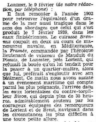 coulera immédiatement faisant 48 victimes dont Henri DE MAUDUIT du