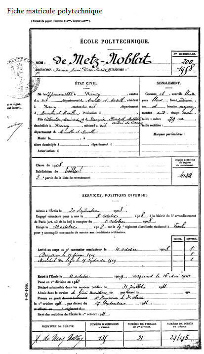 Élève de l'École polytechnique le 1er octobre 1908, opte pour le
