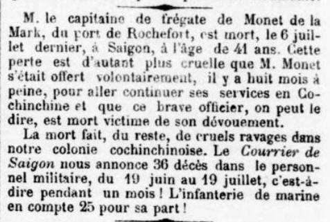 Décédé le 6 juillet 1867 à SAÏGON, COCHINCHINE.