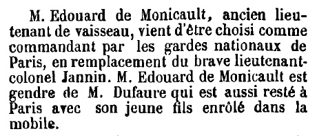 janvier 1871, étant Chef du 6ème Bataillon du 2ème Régiment de la