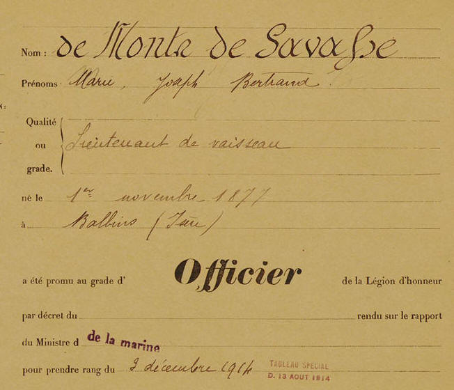 de Savasse, capitaine de frégate, officier de la Légion d'honneur,