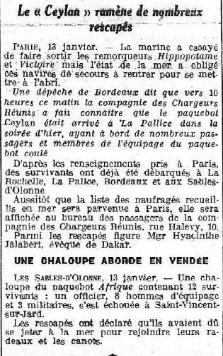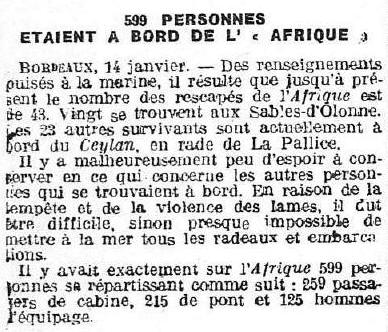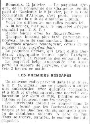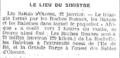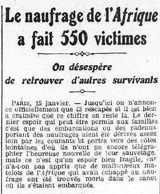 naufrage du paquebot l'Afrique se trouve le comte Bertrand de Monts