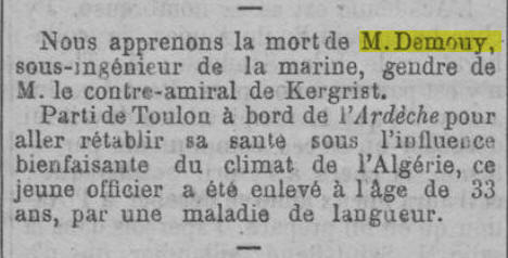 Né le 5 novembre 1840 à PARIS (Seine) - Décédé le 4 janvier 1874 à