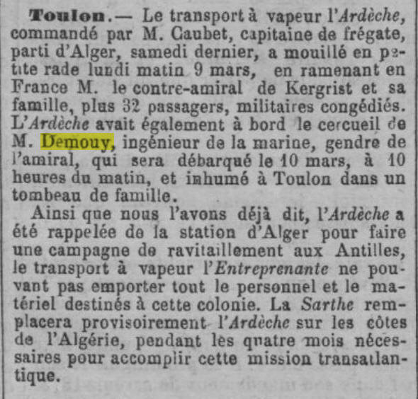 Marié à TOULON (Var) avec Amélie Mary Adelaïde Le NORMAND de