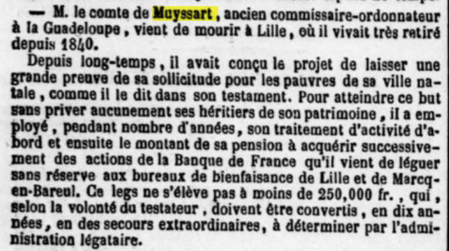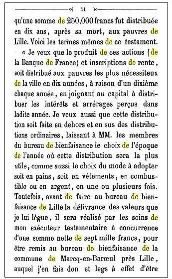 Maire de Lille, par son testament de juin 1850, a légué sa fortune