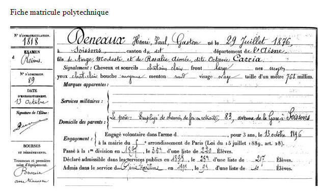 Élève de l'École polytechnique le 1er novembre 1896, opte pour le
