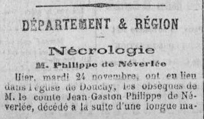 Décédé le 21 novembre 1891 à DOUCHY (Loiret).