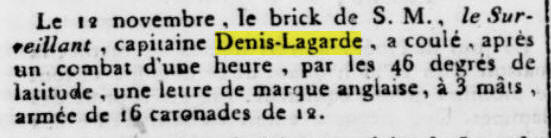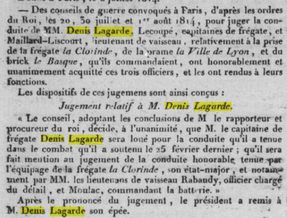 Le 24 février 1814.Combat entre la Clorinde qu'il commande (à