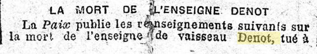 Dérot, de deux marins et nombreux blessés graves). Un rapport de