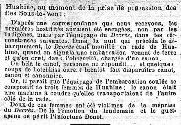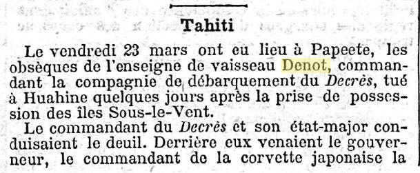 Le 21 mars 1888, un facheux incident à Huahine (mort de l'enseigne