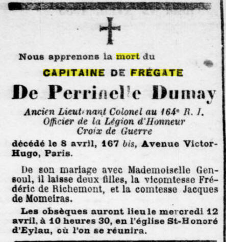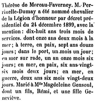 "Le Capitaine de Frégate de Perrinelle a rendu, grâce à ses qualités