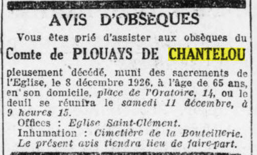 Né en 1861 - Décédé le 8 décembre 1926 à NANTES (Loire Atlantique)