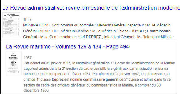 2ème classe le 30 décembre 1956 admis dans la deuxième section des