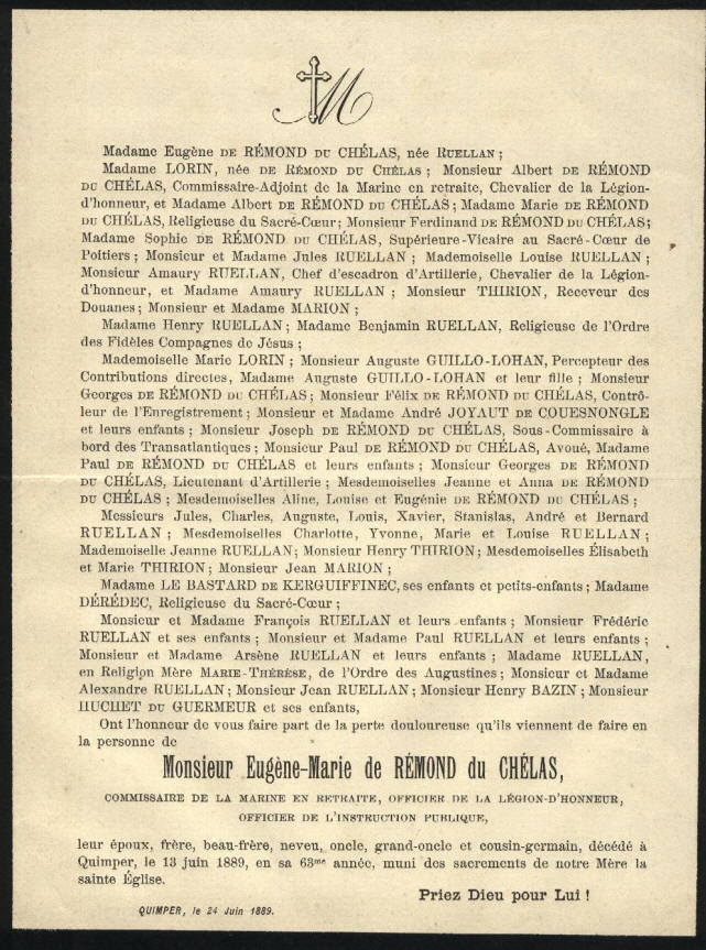 Né le 27 février 1827 à QUIMPER (Finistère) - Décédé le 13 juin 1889