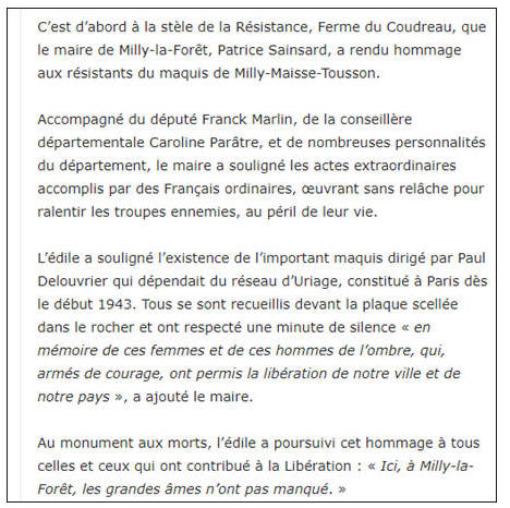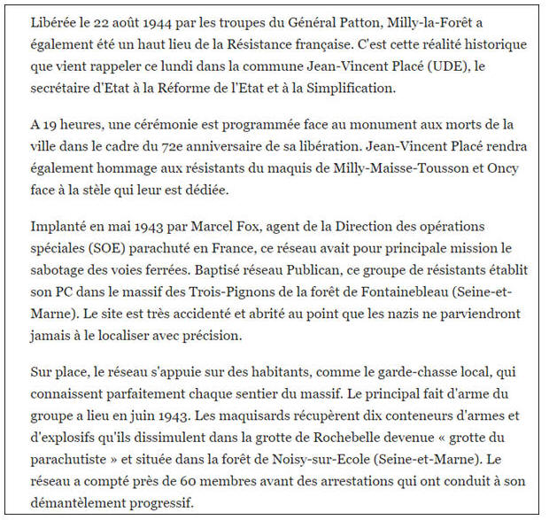 Nemours, puis des corps-francs de Milly-la-Forêt.