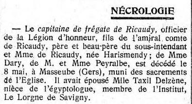TOULON (Var) - Décédé le 8 mai 1924 à MASSEUBE (Gers)