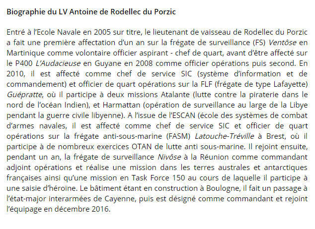 Rattaché à la promotion 2003 de l'Ecole navale (Annuaire AEN 2015)