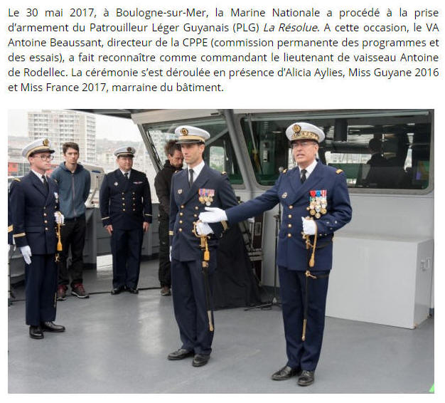 Commande le patrouilleur léger guyannais "LA RESOLUE" le 30 mai 2017