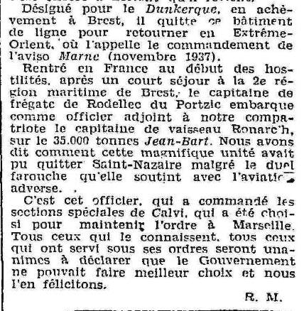 1932, Commandant des sections spéciales de la Marine à CALVI chargé