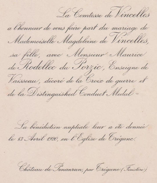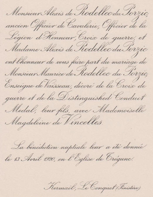 deuxième fois, en mars 1940 avec Andrée de Rodellec du Porzic (