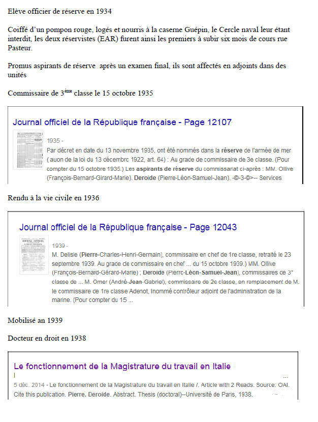 Entre au service en 1934, admissible au cours des élèves aspirants