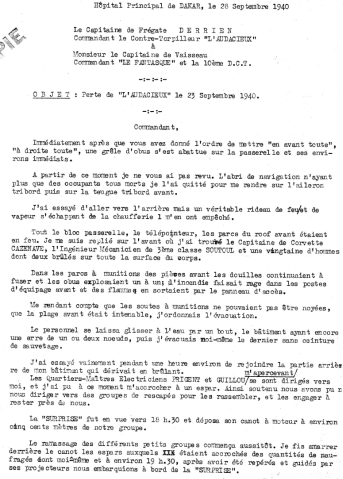 l’attaque de « l’Audacieux », le 23 septembre 1940 devant Dakar /