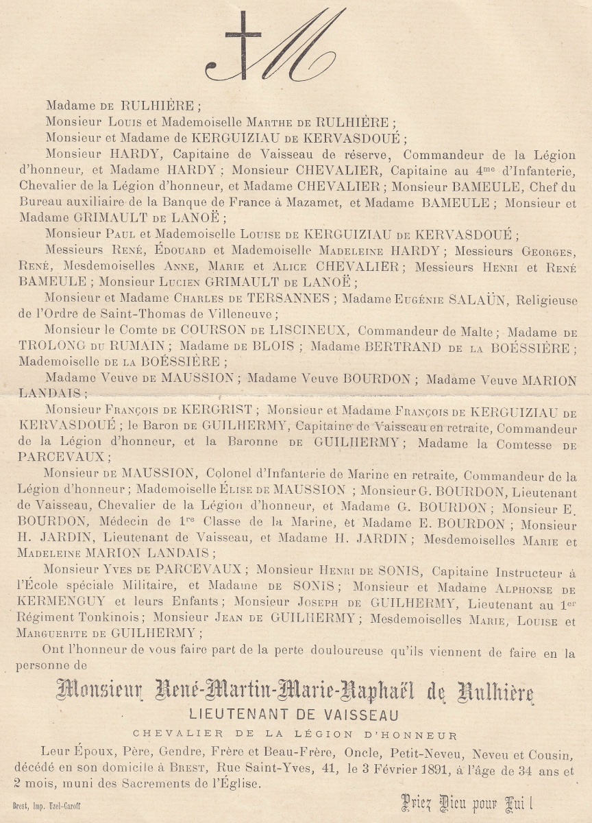 novembre 1856 à BREST (Finistère)v - Décédé le 3 février 1891 à BREST (Finistère)