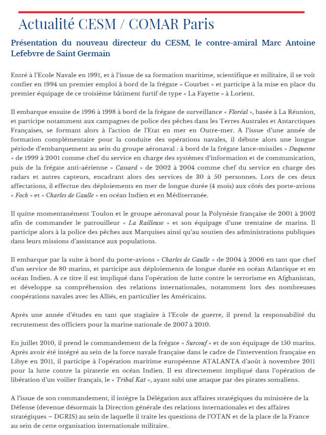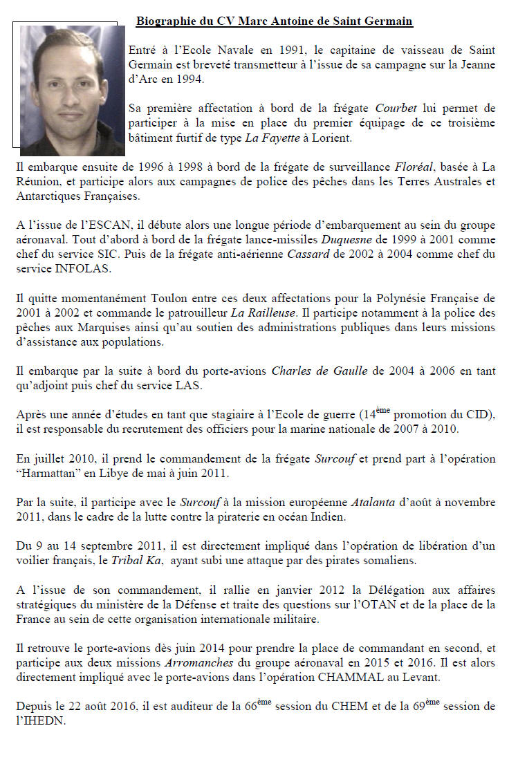 de vaisseau Marc-Antoine de Saint-Germain comme nouveau commandant.