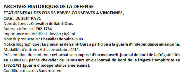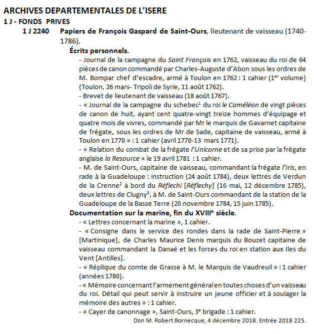 Sources complémentaires : documents relatifs à la famille Saint-Ours
