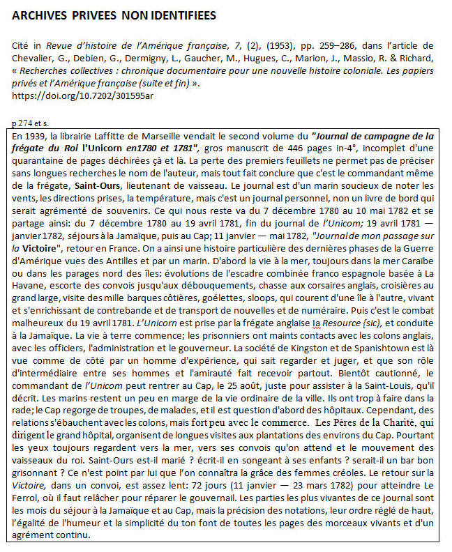 en 1780-1781, la frégate du roi l’Unicorn dans l’escadre