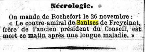 RÉUNION - Décédé le 26 novembre 1881 à ROCHEFORT (Charente Maritime)
