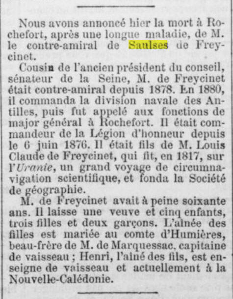 d'Honneur le 6 juin 1876, étant Major de la Flotte à ROCHEFORT.