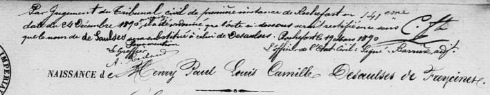 SAULSES de FREYCINET suivant Jugement du Tribunal civil de 1ère
