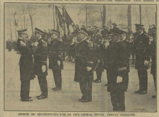 d'honneur par le préfet maritime, le 11 novembre 1937