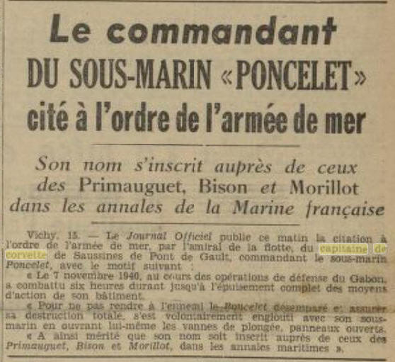 le 7 novembre 1940 devant Port-Gentil (Gabon)