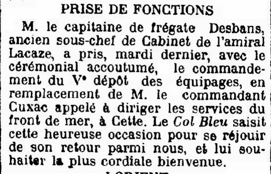 Commandant le 5ème Dépôt des Équipages de la Flotte à TOULON.