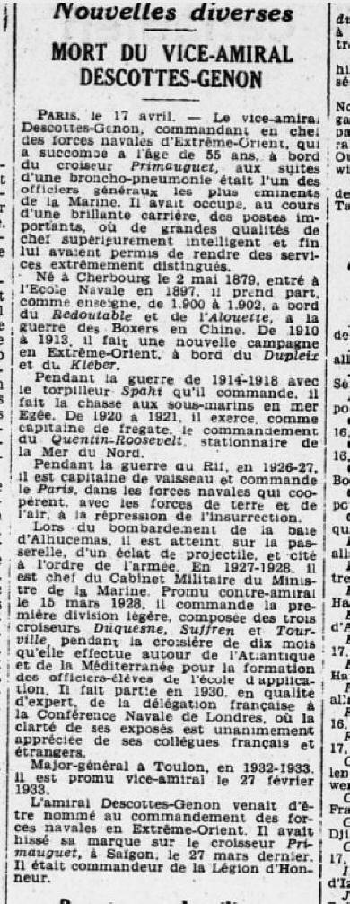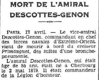 CHERBOURG (Manche) - Décédé le 17 avril 1934 à bord du "PRIMAUGUET",