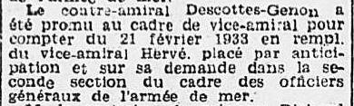 d'Honneur le 27 juin 1929; en service au Ministère de la Marine.