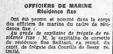 arrondissement maritime à LORIENT; inscrit au tableau d'avancement.
