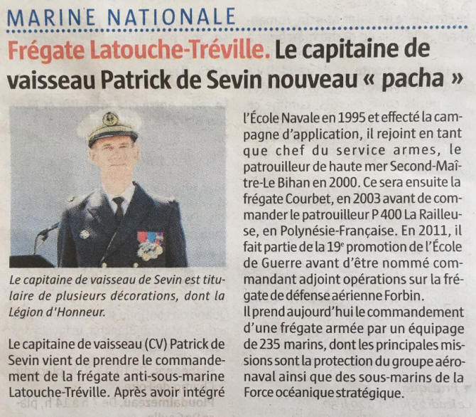 prend le commandement de la frégate Latouche-Tréville à Brest
