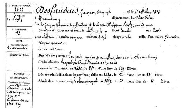(Aspirant) le 8 octobre 1839; port TOULON.