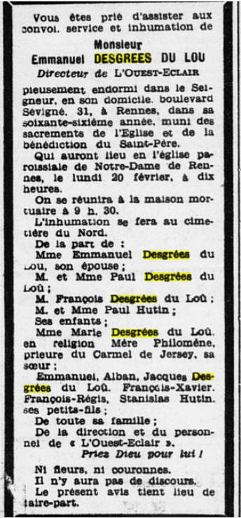 Ouest-France, et de Magdeleine Desgrées du Loû (1896-1991) qui