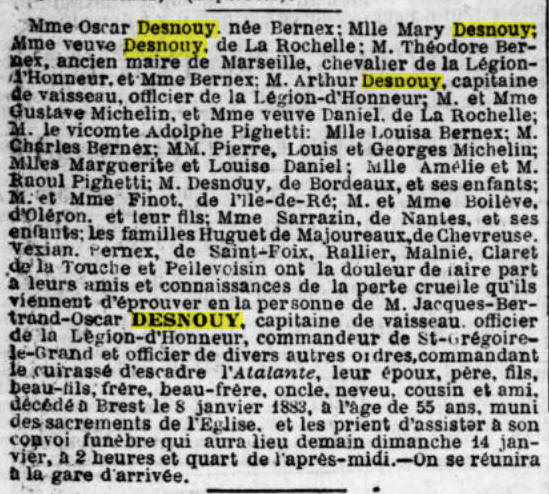 Décédé le 8 janvier 1883 à BREST (Finistère)