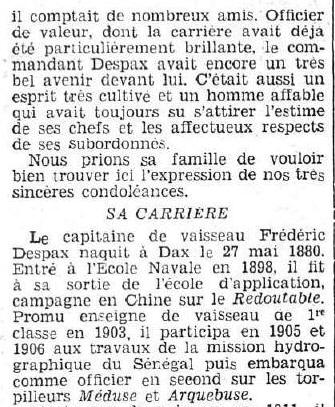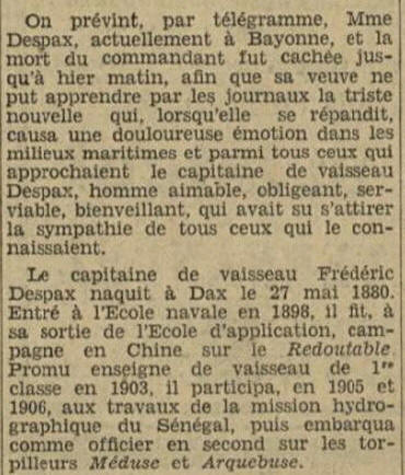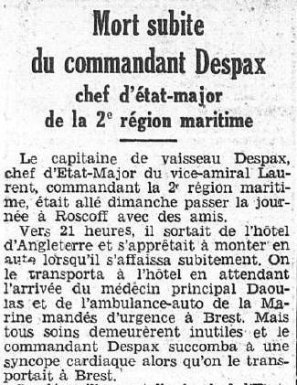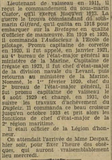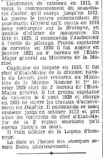 Depax (1880-1935), commandant le croiseur lourd "DUPLEIX", comme