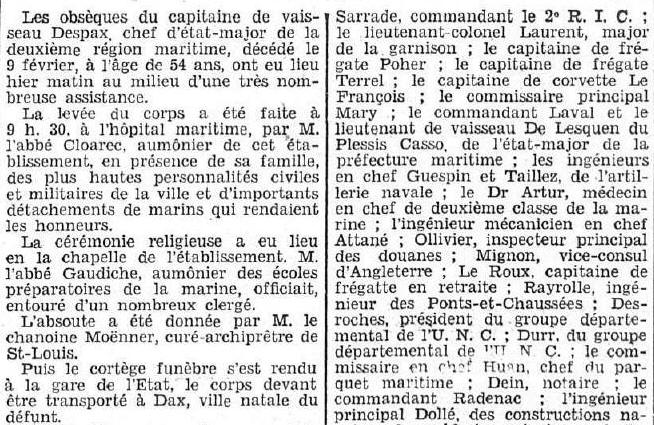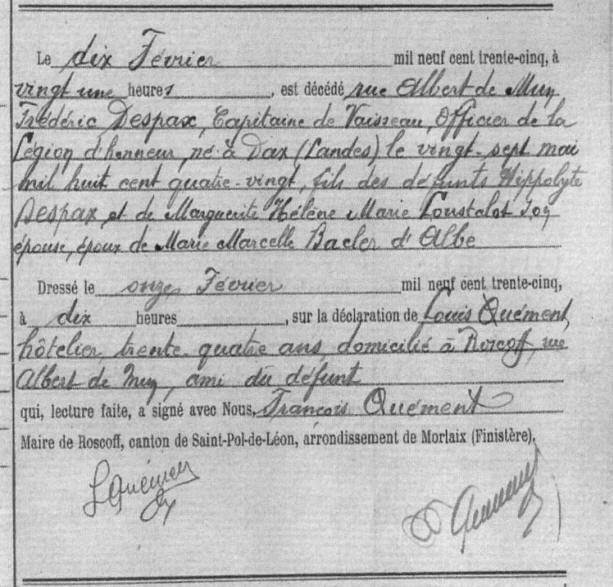 (Landes) - Décédé le 9 février 1935 à ROSCOFF (Finistère)