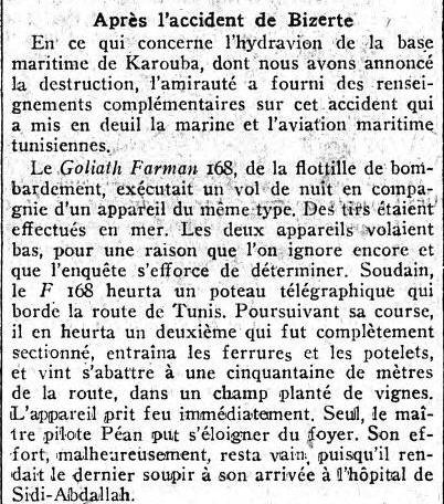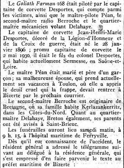 de la Flottille 4 F B et passager de l'hydravion Farman 168 Goliath