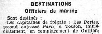 Méditerranée (Cdt Roger DUMONT le 2 août 1907).