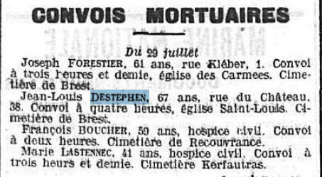 PUJO-le-PLAN (Landes) - Décédé le 28 juillet 1911 à BREST