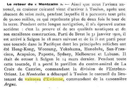 Commandant la canonnière "ARGUS", Division navale d'Extrême-Orient.