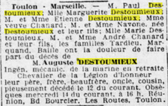 Né le 14 juillet 1867 à TOULON (Var) - Décédé le 12 octobre 1931 à